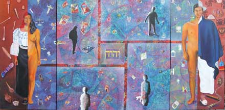 Todo esto es gracias al Creador del Universo, uno de cuyos nombres es Jehová, que está simbolizado en Hebreo mediante el Tetragrámaton, en el centro de la obra. De allí surgen simétricamente en forma cuadrangular las cuatro etapas de la vida, empezando desde la parte inferior izquierda.