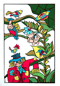Un día, ¡ah, ese día mágico!, el bosque se llenó de luz y esperanzas. El escondite de Oruga Koteleta comenzó a moverse como si cobrara vida extraordinaria y algo así como un capullo de muchos colores empezó a abrirse poco a poco, como se explaya el arco iris o la luz transparente y policromática de la lluvia que cae.