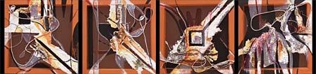 Este planteamiento es complementado con propuestas plásticas acerca de los fraccionamientos de espacios concretos y sus recorridos, del continuo fluir de los ámbitos públicos a los privados, de los lugares abiertos a los cerrados, por medio de estructuras intermedias que los culminan y, al tiempo, los enuncian, de espacios y momentos recorridos y marcados, de un tiempo expandido entre pasado, presente y futuro. Líneas que se entretejen para formar otras líneas de intersección y vida. |