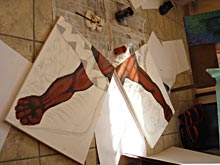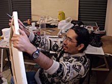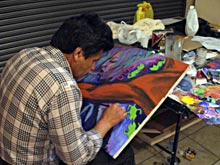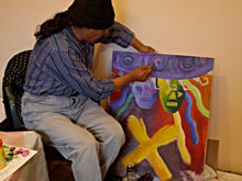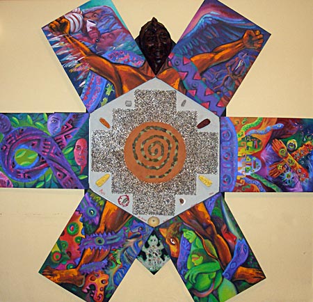 Roger Araoz y Nestor Caral comprendieron a profundidad la filosofía del evento y con sabiduría cimentaron con su iniciativa el espacio para el diálogo y encuentro de los artistas plásticos, proponiendo la creación de dos obras que a la postre resultarían definitivas: la primera, titulada “TUPAC AMARU” (en colaboración con los pintores ecuatorianos Jaime Puetate y Freddy Mejía) y la segunda titulada “INTI ÑAN – EL CAMINO DEL SOL”, cuya ejecución y boceto final estuvieron a cargo de colectivo de pintores participantes, dirigidos por el Maestro Juan de la Cruz Machicado.