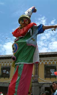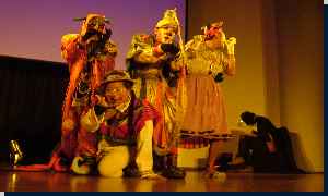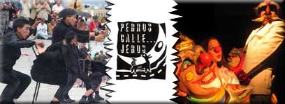 LA FIESTA en escena, una mezcla de lo tradicional y contemporáneo en un tejido de movimiento, texto, mimo, música y mascaras cómicas. Show teatral.”