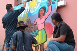 Obra Espíritu que habla del hombre y la naturaleza, su poder creativo y los símbolos que milenariamente lo acompañan. Esta obra fue realizada en diferentes sesiones, durante y después de la Bienal. La dirigió el Maestro Machicado, sirviendo además como un pretexto para abrir un espacio de diálogo e intercambio entre los artistas plásticos presentes.