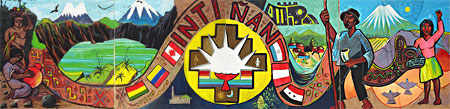 Obra de creación colectiva impulsada por los Artistas Roger Araoz y Nestor Caral (Bolivia) en base a un boceto colectivo inicial creado junto a los artistas Jaime Puetate y Freddy Mejía (Ecuador), simplificado por el Maestro Juan de la Cruz Machicado (Perú).
